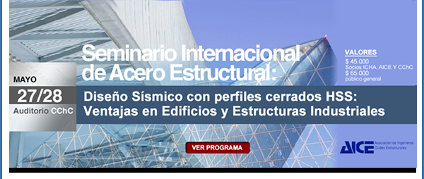 El Instituto Chileno del Acero (ICHA) y la Asociación de Ingenieros Civiles Estructurales (AICE), en conjunto con la Corporación de Desarrollo Tecnológico (CDT) de la Cámara Chilena de la Construcción (CChC) abren las inscripciones para participar del Seminario Internacional de Acero Estructural Diseño Sísmico con perfiles cerrados HSS: Ventajas en Edificios y Estructuras Industriales.
