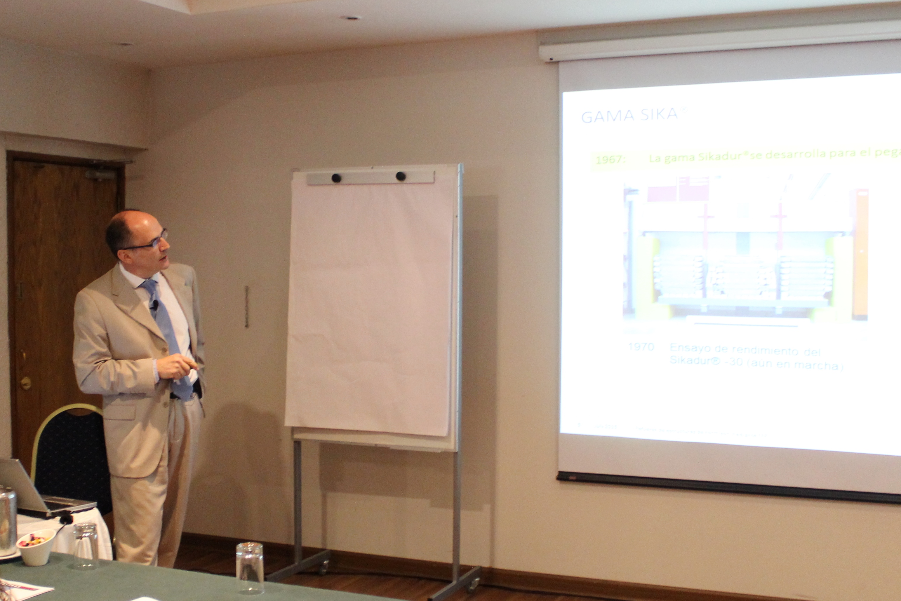 | El director de AICE, Lucio Ricke, dio la bienvenida a la presentación. | La actividad la encabezó David Vázquez, corporate product engineer de Sika. | |