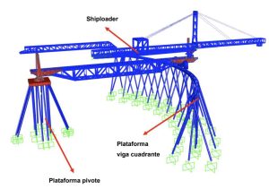 El sistema de carguío se conforma de un puente de acceso, galería de soporte de una correa transportadora de alimentación y un equipo cargador (shiploader) montado sobre plataformas marinas.