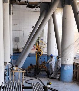 Análisis de eventual rehabilitación para un edificio de silos de almacenamiento (siete en total) de concentrado de cobre y caliza de 20 m de altura aprox. Construido en acero en los años 80′. Peso sísmico 2.500 ton. Propiedad de Codelco, ubicada en Potrerillos, región de Atacama.